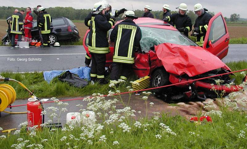 In Höhe des alten Zollhauses waren zwei PKW zusammengestoßen. An der Einsatzstelle eingetroffen, hörten die ersten Rettungskräfte bereits markerschütternde Schreie einer jungen Frau. Da sie nicht angeschnallt war, wurde die Fahrerin des einen Unfallwagens durch das Beifahrerfenster geschleudert und hing zur Hälfte aus dem Fenster. Die andere Hälfte der Frau war im PKW eingeklemmt. Nachdem die 25 jährige aus Stahe befreit war, wurde Sie mit lebensbedrohlichen Verletzungen im SAR-Rettungshubschrauber (Bell UH-1D aus Nörvenich) zum Aachener Klinikum geflogen. Gleichzeitig versorgten die Einsatzkräfte der Feuerwehr die Fahrerin des zweiten PKW, eine 57-jährige Frau aus dem Selfkant. Diese wurde glücklicherweise nicht eingeklemmt, erlitt dennoch schwere Verletzungen. Nach der Rettung half die Feuerwehr bei der Bergung der Unfallfahrzeuge und reinigte anschließend die Einsatzstelle. Für die Dauer des Einsatzes musste die Bundesstraße rund zwei Stunden lang voll gesperrt werden.