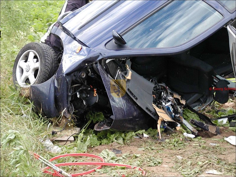 Da der Motorblock des VW Polo auf der Hüfte der jungen Frau lag, gestaltete sich die Rettung äußerst schwierig. Erst nach rund 90 Minuten konnte die Frau endlich befreit werden.