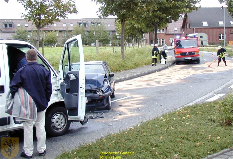 Die Löschgruppen Kreuzrath und Gangelt wurden heute zu einem Verkehrsunfall auf der Hauptstraße in Kreuzrath gerufen. Die Feuerwehr nahm die auslaufenden Betriebsstoffe auf und sperrte die Einsatzstelle während der Aufräumarbeiten ab.