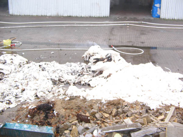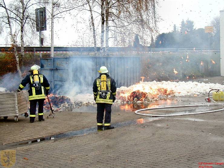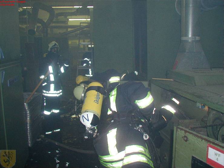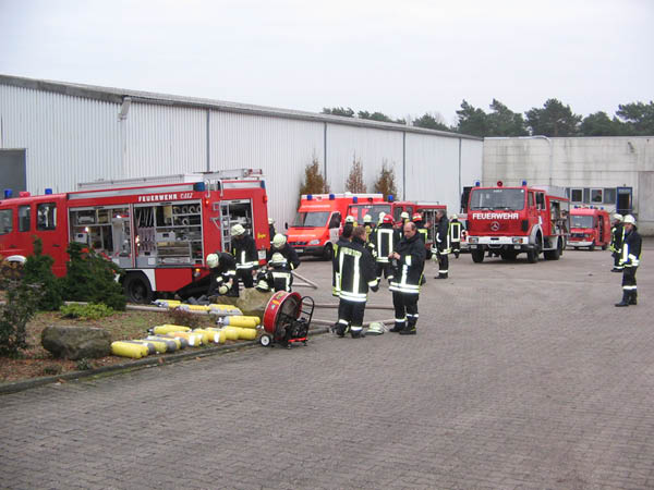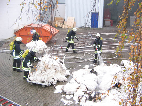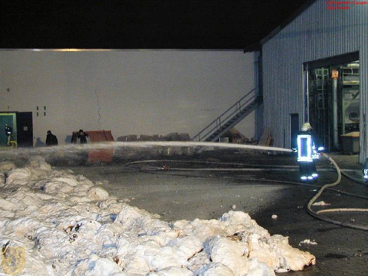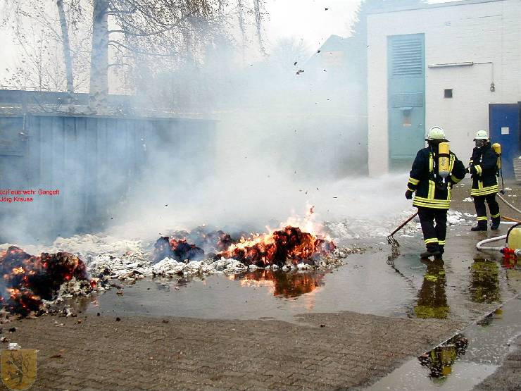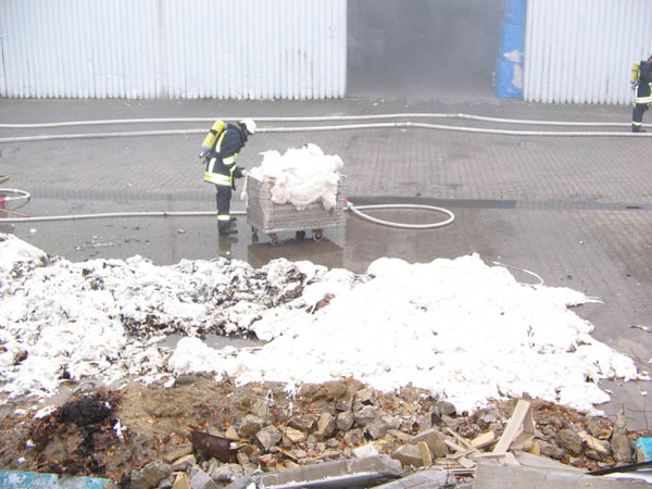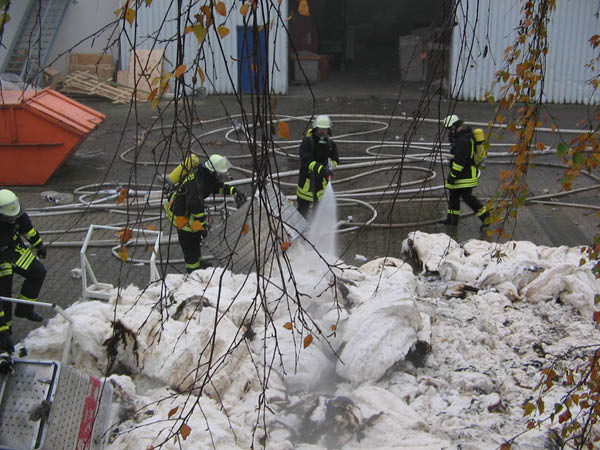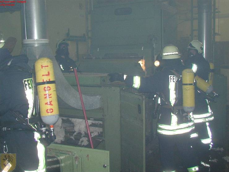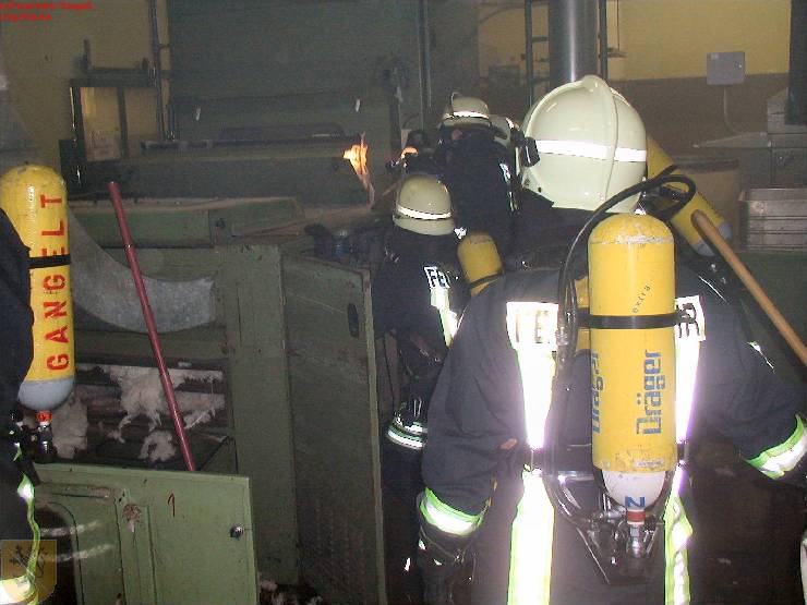 Zunächst wurden um 13:39 Uhr die Löschgruppen Gangelt, Stahe, Kreuzrath, Breberen, Hastenrath und Langbroich alarmiert. Bei den Bränden in der Absauganlage müssen eine Vielzahl von Maschinenteilen demontiert werden um an die Glutnester zu gelangen. Aufgrund der starken Rauchentwicklung kann diese Arbeit nur unter Atemschutz durchgeführt werden. In der Anfangszeit waren 4 Trupps unter Atemschutz im Innenangriff vorgenommen worden. Aufgrund des hohen Aufkommens an Atemschutzgeräteträgern und aufgrund der langen Einsatzdauer wurden um 14:56 Uhr die Löschgruppen Schierwaldenrath und Birgden alarmiert, wobei die Löschgruppe Birgden den Grundschutz der Gemeinde Gangelt sicherstellen sollte in dem sie im Gerätehaus Birgden in Bereitstellung verblieb. Da der Abrollbehälter Atemschutz (AB-Atemschutz) nicht einsatzbereit war, wurde um 15:16 Uhr wurde zusätzlich der Zug 2 der Feuerwehr Selfkant mit den Löschgruppen Süsterseel, Hillensberg, Hoengen und Saeffelen zur Einsatzstelle alarmiert. Zur Verpflegung der Einsatzkräfte, insbesondere der Atemschutzgeräteträger, wurde um 15:35 Uhr der Verpflegungszug des DRK alarmiert. Zur Koordinierung der zahlreichen Einsatzkräfte wurde um 15:35 Uhr der Einsatzleitwagen der Feuerwehr Geilenkirchen alarmiert, da dieser deutlich größer ist als der Kommandowagen des Wehrleiters der Feuerwehr Gangelt. Kurze Zeit später (16:03 Uhr) traf der stellvertretende Kreisbrandmeister Hans-Hubert Plum an der Einsatzstelle an, um die Einsatzmaßnahmen zu beobachten. Nachdem die brennenden Baumwollreste aus den Maschinen geholt waren, legten die Einsatzkräfte darüber einen Schaumteppich. Die letzten Einsatzkräfte verließen nach rund 6 Stunden die Einsatzstelle.