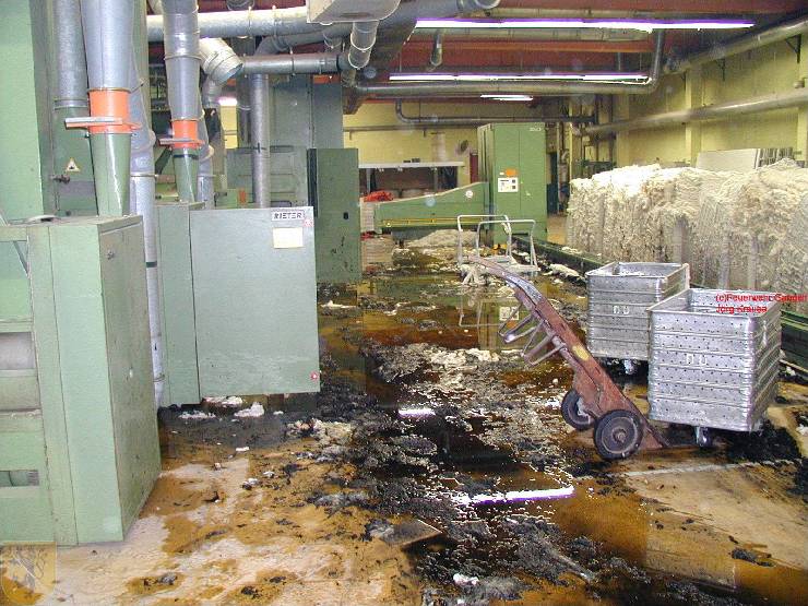 In der Baumwollspinnerei May und Cie brach in einer Lager- und Produktionshalle ein Brand in einer Absauganlage aus.