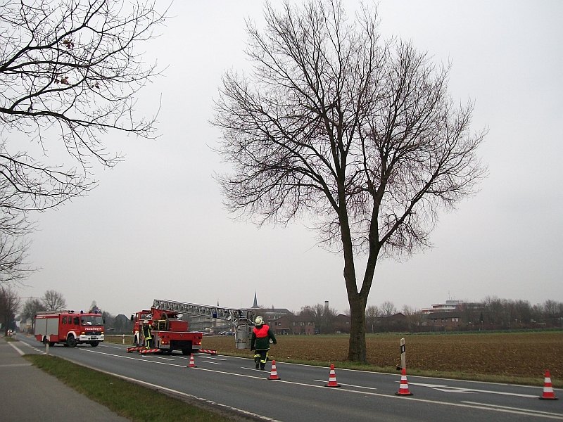 Ein abgebrochener Ast an einem Baum drohte auf die B56 zu fallen. Dieser wurde durch die Feuerwehr entfernt.