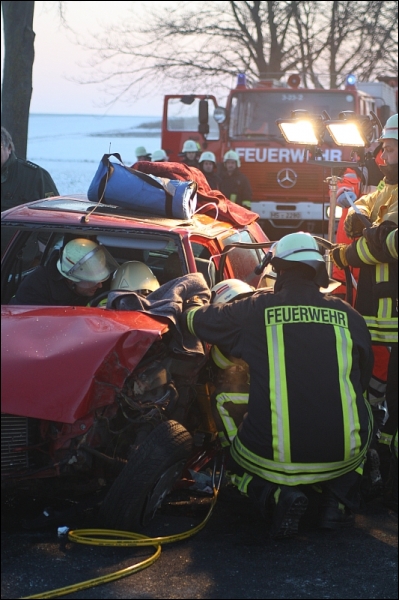 Nach einem Verkehrsunfall mußte eine Fahrerin aus ihrem Kleinwagen befreit werden.