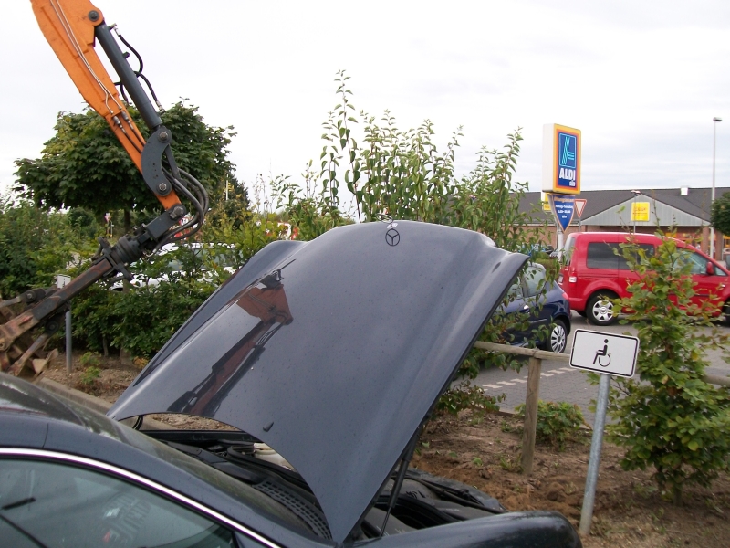 Nach einem missglückten Einparkversuch verlor ein Auto auf einem Parkplatz im Nachversorgungsgebiet Öl.