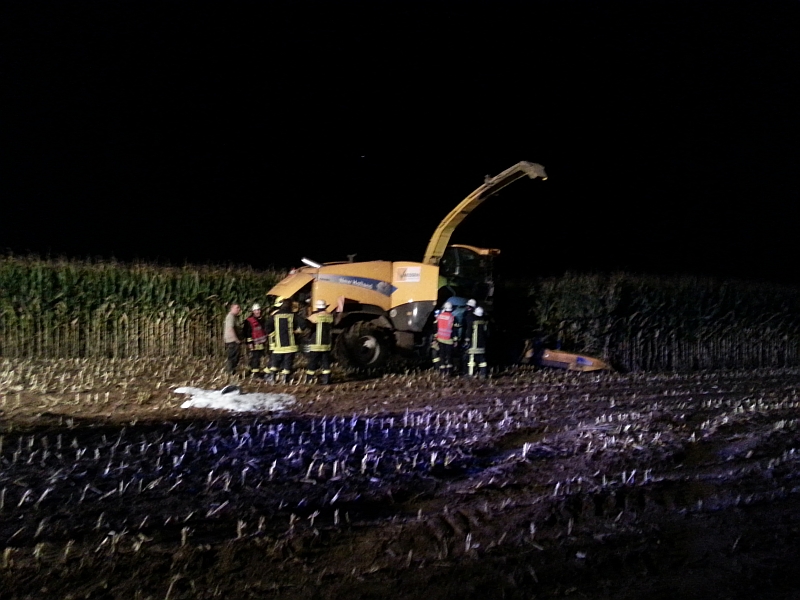 Zwischen Hastenrath und Kievelberg geriet bei Maiserntearbeiten ein Feldhäcksler in Brand.