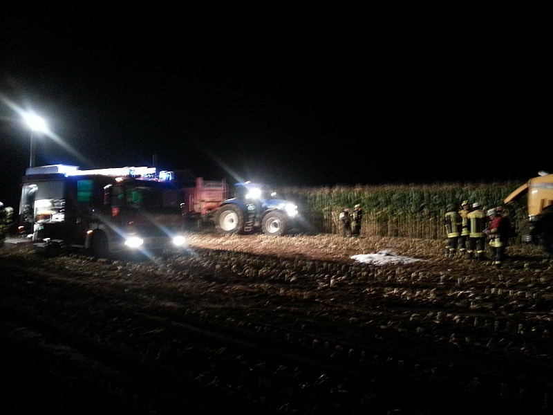 Mit Hilfe von Löschschaum wurde der brennende Teil der Landmaschine abgelöscht. Anschließend wurde das Fahrzeug mit Hilfe einer Wärmebildkamera auf weitere Brand- oder Glutnester untersucht.