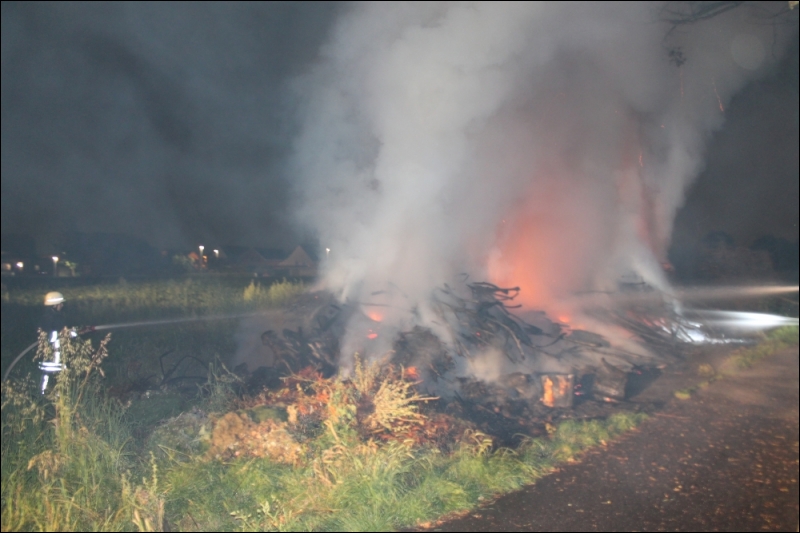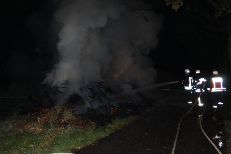 Die Züge 1 und 2 sowie der Einsatzleitwagen der Feuerwehr Gangelt wurden heute Nacht zu mehreren Bränden an der Weberstraße in Birgden gerufen.