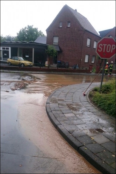 Nach Starkregenfällen wurde eine größere Menge Schlamm auf die Fahrbahn der Straßen Starzend und an der Vogelstange gespült. Die Feuerwehr sicherte die Einsatzstelle und beseitigte den Schlamm von der Fahrbahn. Nach rund einer halben Stunde war der Einsatz für die Feuerwehr beendet.
