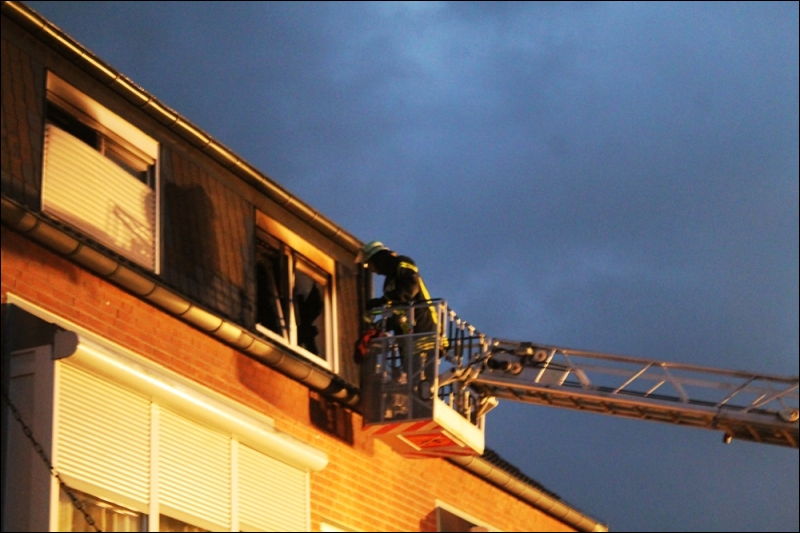 Bereits auf der Anfahrt bemerkten die Einsatzkräfte eine massive Rauchentwicklung im Ortsteil Mindergangelt. Vor Ort stellten die Einsatzkräfte fest, dass im Dachgeschoss des Altenheimes ein Brand in einem Bewohnerzimmer ausgebrochen war. Die Feuerwehr unterstützte die Mitarbeiter des Altenheimes bei der Evakuierung des betroffenen Bereiches und bekämpfte unverzüglich den Brand. Dank des schnellen und zielgerichteten Einsatzes der Feuerwehr konnte eine Ausbreitung des Brandes und des Brandrauches verhindert werden. Aufgrund der großen Anzahl an betroffenen Bewohnern, wurde unmittelbar nach der ersten Rückmeldung das Alarmstichwort auf MANV1 (Massenanzahl an Verletzten, 5-7 Patienten) erhöht. Neben mehreren Rettungswagen und Notärzten eilten daraufhin Kreisbrandmeister Klaus Bodden, der leitenden Notarzt Dr. Peter Kohlen sowie der organisatorische Leiter des Rettungsdienstes Michael Ollig zur Einsatzstelle nach Mindergangelt.