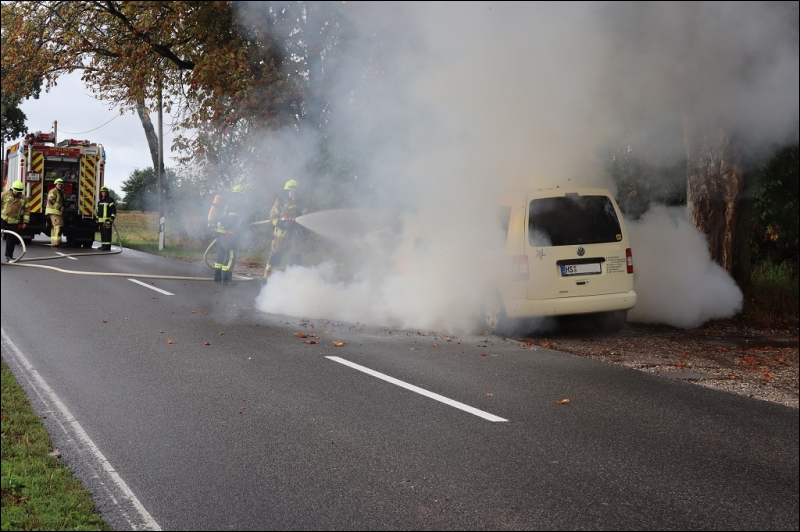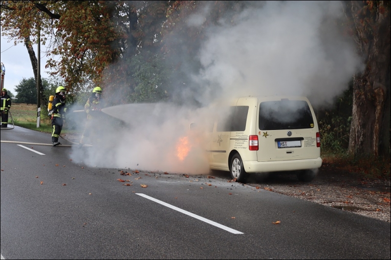 Aus bislang ungeklärter Ursache geriet ein Volkswagen Caddy zwischen den Ortschaften Birgden und Gillrath in Brand. Bei eintreffen der alarmierten Einheiten Birgden, Schierwaldenrath und der Bauhofstaffel drangen bereits große Flammen aus der Motorhaube des Taxi. Der Taxifahrerin gelang es rechtzeitig sich in Sicherheit zu bringen, Fahrgäste waren zum Zeitpunkt des Brandausbruches nicht im Fahrzeug. Die Einsatzkräfte der Feuerwehr bekämpften unter schwerem Atemschutz den Brand. Für die Dauer der Löscharbeiten musste die Kreisstraße 3 zwischen Birgden und Gillrath für rund eine Stunde lang gesperrt werden.