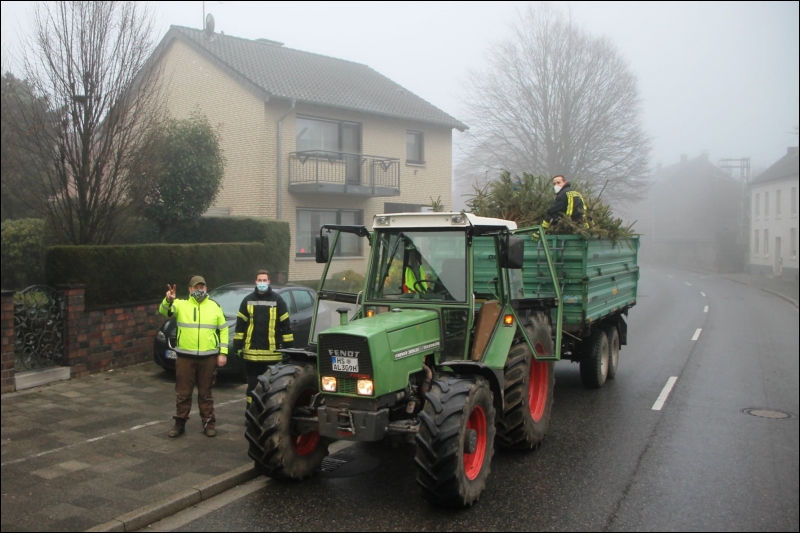 Um neun Uhr starteten zahlreiche kleine Gruppen mit privaten Fahrzeugen wie Traktoren und Kleintransportern um die alten Weihnachtsbäume in allen Teilen der Gemeinde Gangelt einzusammeln. Die gesammelten Bäume waren dabei so unterschiedlich wie die Bürger der Gemeinde Gangelt. Hierbei konnten die Mitglieder der Feuerwehr Gangelt rund 2.000 Bäume einsammeln. Aus Sicherheitsgründen führten die Mitglieder der Einsatzabteilung die Sammlung in diesem Jahr ohne die Jugendfeuerwehr und die Ehrenabteilung durch. Zudem trugen die Einsatzkräfte Mund-Nasen-Bedeckungen um eine potentielle Ansteckungsgefahr zu minimieren. Schließlich muss die Einsatzbereitschaft der Feuerwehr zwingend aufrecht erhalten bleiben. Aus dem gleichen Grund musste das gemeinsame Mittagessen als kleine Stärkung ausfallen. Dennoch war die Motivation der beteiligten Kameraden hoch, denn die gesammelten Weihnachtsbäume werden durch eine Entsorgungsfirma recycelt und wiederverwertet. Zudem erhält die Jugendfeuerwehr für das Einsammeln der Weihnachtsbäume seitens der Gemeinde Gangelt eine kleine Entschädigung, mit der die Jugendarbeit in der Feuerwehr finanziert wird.
