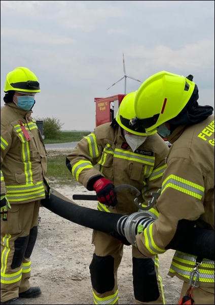 Bei Einsätzen der Feuerwehr muss jeder Handgriff sitzen. Deshalb sind regelmäßige Übungen mit dem Spezialwerkzeug zwingend notwendig. Um dennoch einen größtmöglichen Schutz der Einsatzkräfte zu gewährleiten, tragen die Einsatzkräfte bei den Übungen durchgehend medizinischen Mund-Nasen-Schutz. Zudem dürfen die Einsatzkräfte nur in kleinen Gruppen mit maximal 12 Personen üben. Auch wenn die Witterung der vergangenen Tage es nicht vermuten lässt, hat die Waldbrandsaison in unserer Gegend wieder begonnen. So war beispielsweise die Brandweer aus dem benachbarten Schinveld schon mehrfach dieses Jahr zu Bränden in den Schinvelder Bossen alarmiert. Deshalb führte die Einheit Breberen bereits erste Übungen zur Förderung von Löschwasser über lange Wegstrecken durch. Insbesondere bei größeren Vegetationsbränden ist die Löschwasserversorgung ausschlaggebend für den Löscherfolg. Während das taktische Vorgehen sehr gut online vermittelt werden konnte, war es für alle Beteiligten wichtig, noch einmal die Handgriffe in der Praxis zu üben. Gleiches gilt ebenso für die Einheiten Gangelt, Stahe-Niederbusch und die Bauhofstaffel. Hier stand insbesondere die Handhabung der neuen Fahrzeuge im Focus.